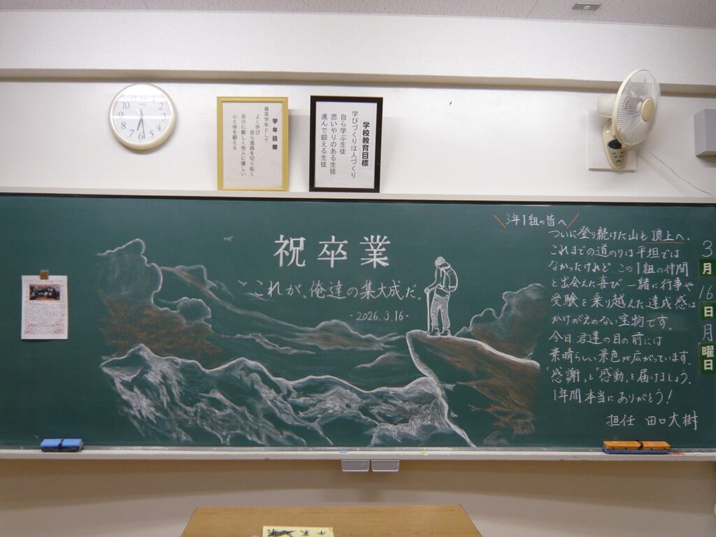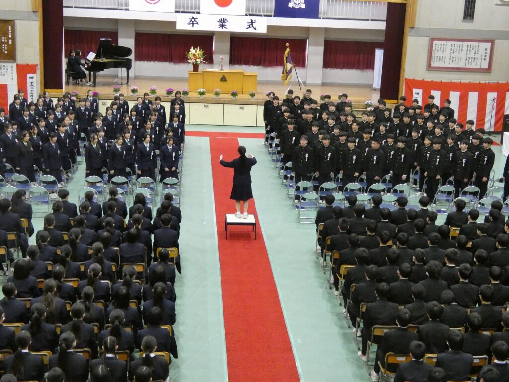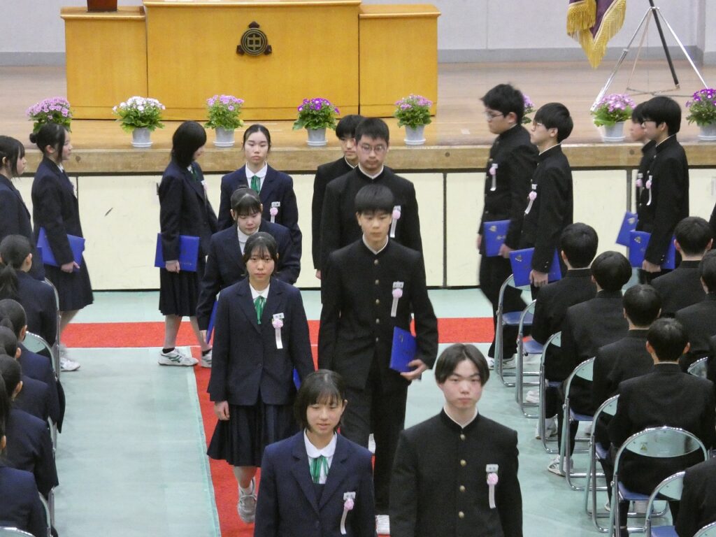 卒業式 2026年3月17日 最終更新日時 : 2026年3月19日 kumagaya_edit 1・2年生が心を込めて作ってくれた式場で、第79回卒業式を挙行し、135名の卒業生が本校を巣立っていきました。3年生の皆さん、3年間、三尻中を支えてありがとうございました。卒業後もそれぞれの道で活躍されることを願っています。