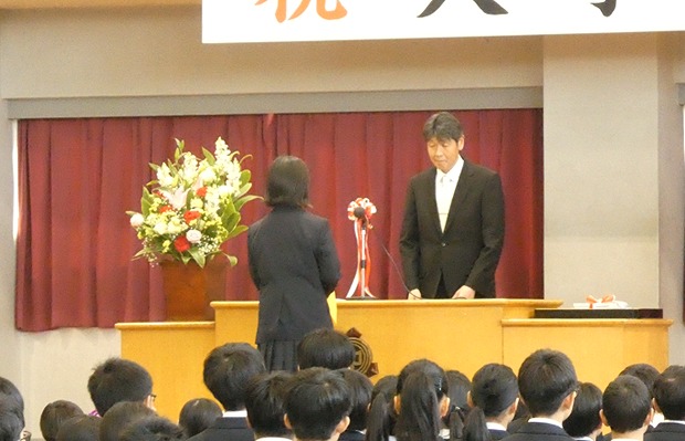 午後は、2・3年生が心を込めて作り上げた式場で、入学式を行いました。152名の1年生を迎え、453人の全校生徒がそろい、80周年を迎えた三尻中学校がスタートしました。