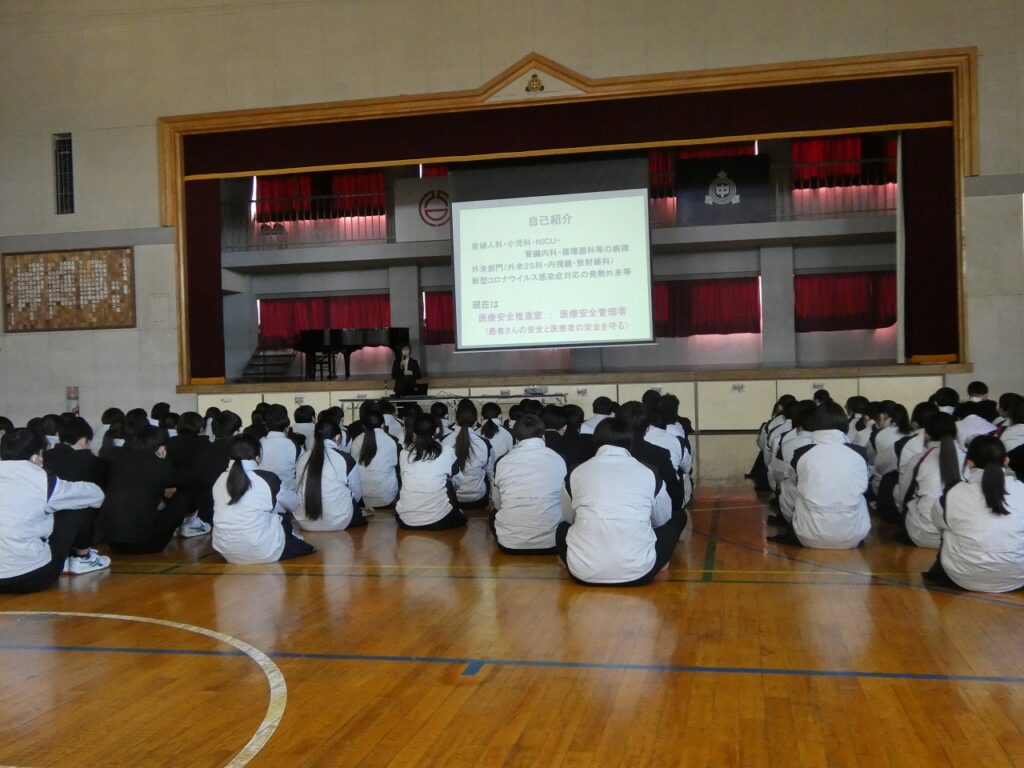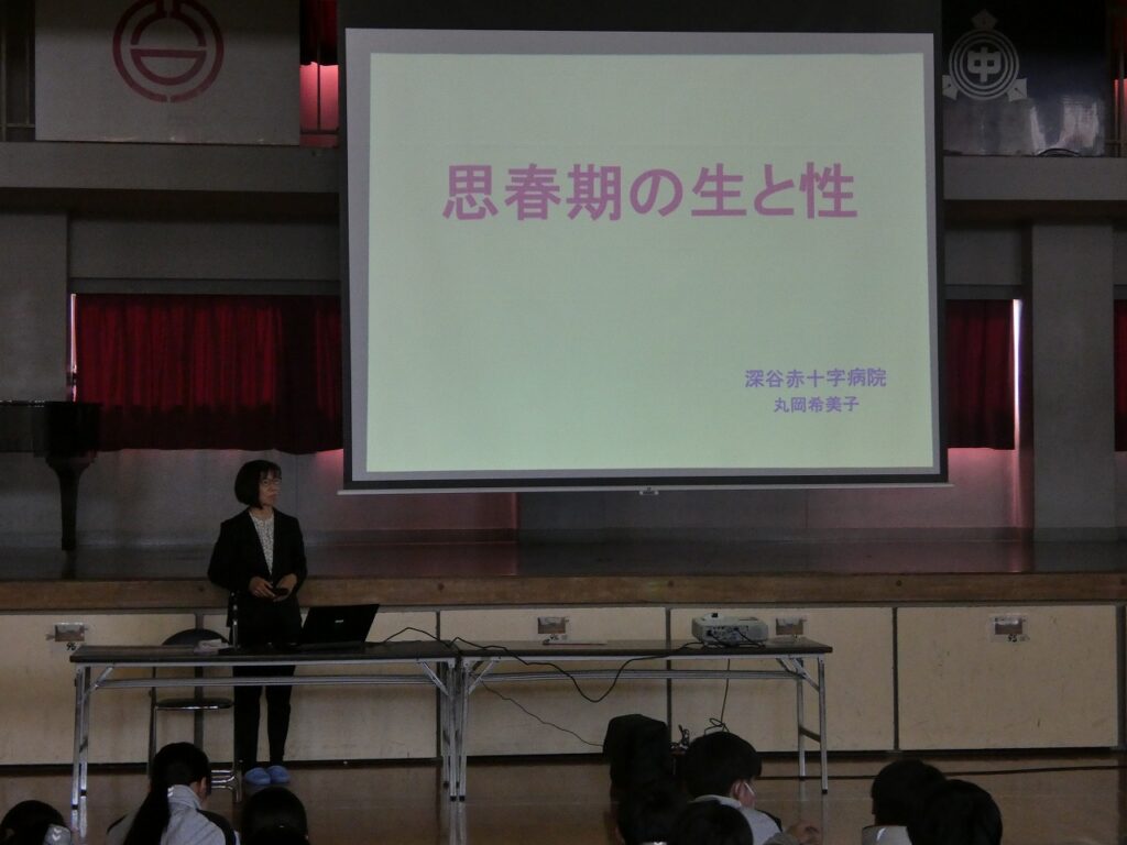 深谷赤十字病院から丸岡希美子先生を講師に迎え、3年生を対象にした「性教育講演会」を開催しました。思春期を迎え、卒業後も心身ともに健全に大きな夢と希望をもっていろいろなことに取り組んでほしいという願いでお話をしていただきました。丸岡先生、ありがとうございました。