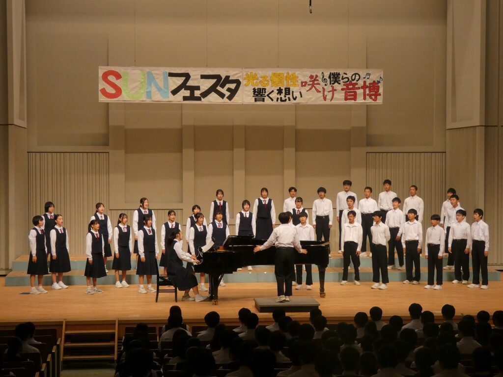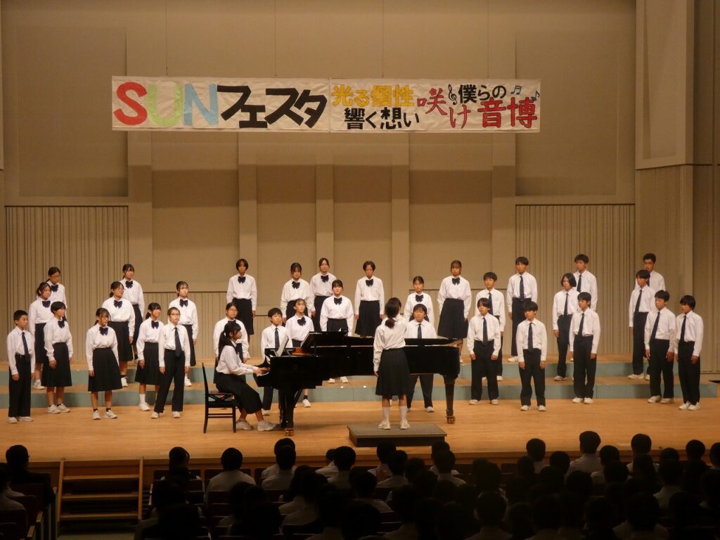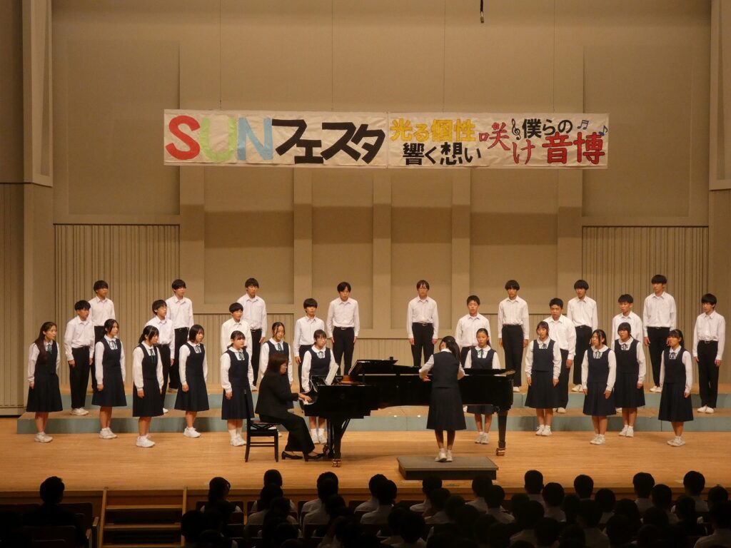 SUNフェスタ 2025年10月30日 最終更新日時 : 2025年10月30日 kumagaya_edit 三尻中学校の文化の祭典である「SUNフェスタ」をさくらめいとで実施しました。美術部の作品展示や吹奏楽部の発表、生活芸術部のファッションショー、クラス合唱、生徒会引継ぎ式などの内容で、生徒が主体となって会を作り上げてくれました。